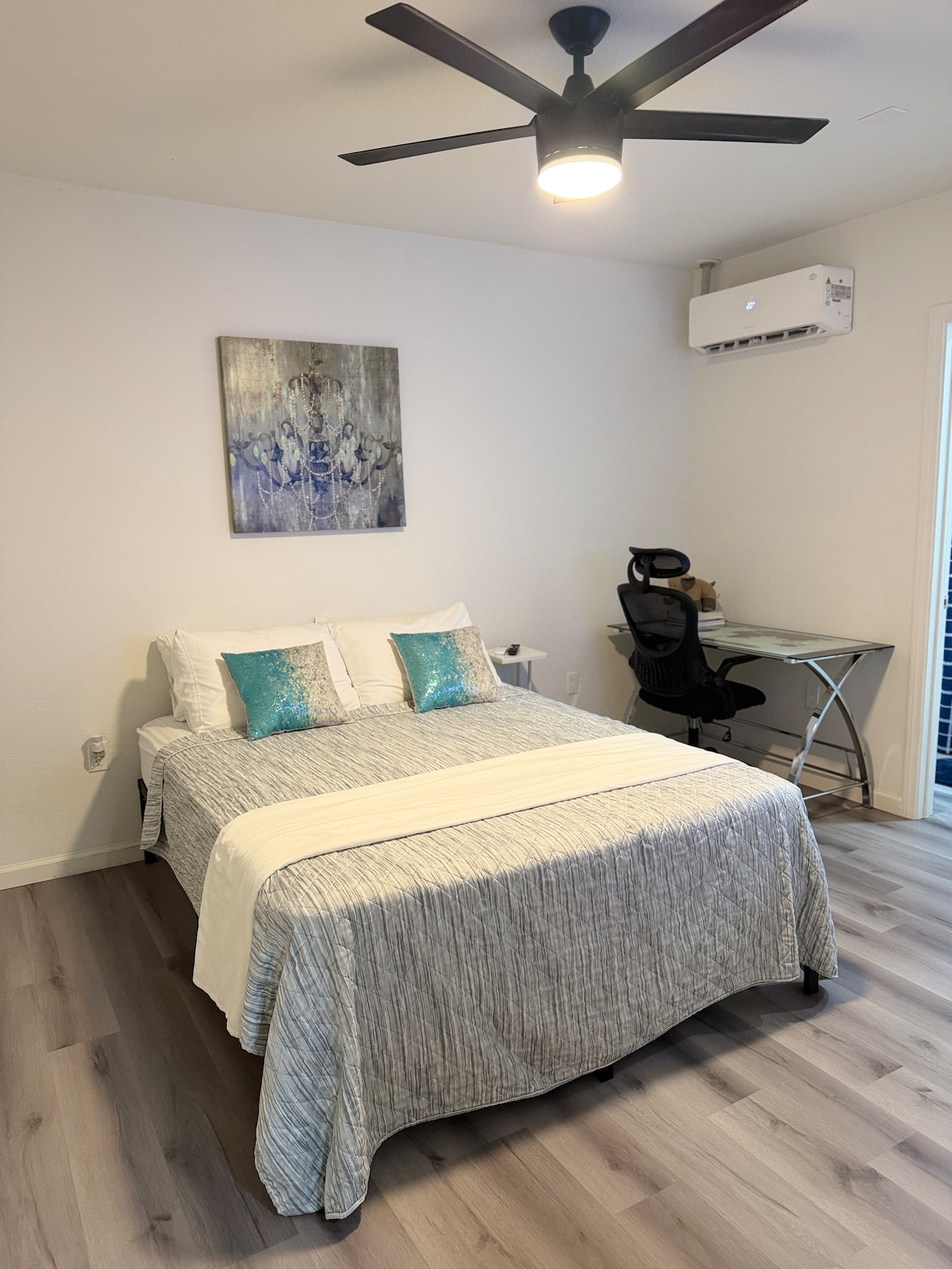 Penzion (casita) v areálu o rozloze 1 akru, který je 8 minut od letiště, 10 minut od Strip a méně než 15 minut od nového stadionu Allegiant. Casita se skládá ze 3 mini apartmá (ložnice s vlastní koupelnou), obývacíhojídelny, kuchyně, prádelny a toalety. Společný prostor mimo penzion zahrnuje bazén, lázně, posilovnu, pickle-ballový kurt, bocce kurt a terasu s plynovým a elektrickým grilem. PRO NEZDÍLENÍ SPOLEČNÝCH PROSTORŮ – viz níže.