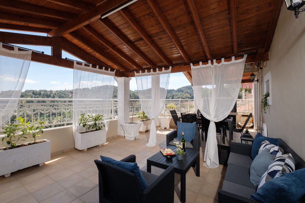 Buď jako doma!! V krásné malebné vesničce Korfu je plně vybavený moderní byt. Odpočiň si na balkoně s krásným výhledem. K dispozici je velká televize s Netflixem, knihovna, šachy a stolní hry. It is very close to beautiful beaches and sights of the island such as Agios Georgios Pagon , Arillas, the port wheel,the famous Canal D'amour and Afionas with the nepřekonatelný výhled na ostrovy Diapontia. Je to jen 35 minut od města Korfu.