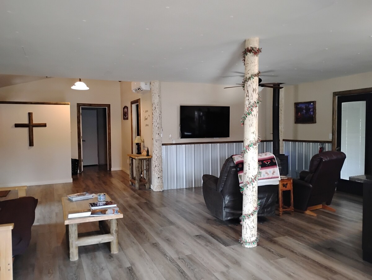 Během tohoto jedinečného a poklidného pobytu si dokonale odpočineš v venkovském prostředí na ploše jednoho akru s dostatkem parkovacích míst. V blízkosti Will Rogers Downs a Cherokee Casino. 5 mil od dálniční brány z dálnice 44 a v blízkosti trasy 66. Dům je nově postavený a všechno je nové. Všechny nové spotřebiče a nová 58" chytrá televize. Právě jsme nainstalovali nový ohřívač vody, takže teď máme spoustu teplé vody! Velmi rádi bychom tě měli.