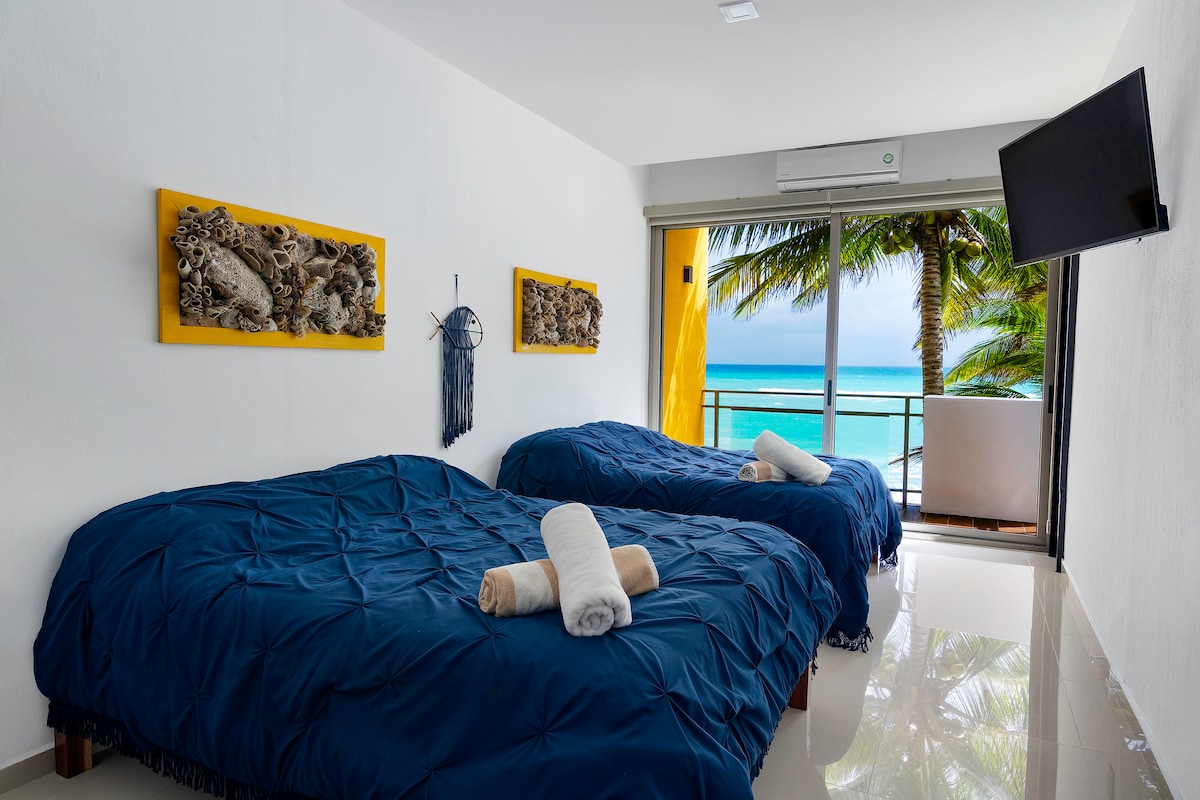 Luxury condo in prime Playa del Carmen, just steps from Mamitas Beach and a short walk to Quinta Avenida. Designed for comfort and refined coastal living, the residence features bright interiors, high-end finishes, a spa-style rain shower, private balcony with tranquil mangrove views, and fast fiber Wi-Fi. Guests enjoy an ocean-view rooftop with pool, hot tubs, and gym, plus 24/7 security and self check-in—an elegant retreat near top dining, shopping, culture, and nightlife.