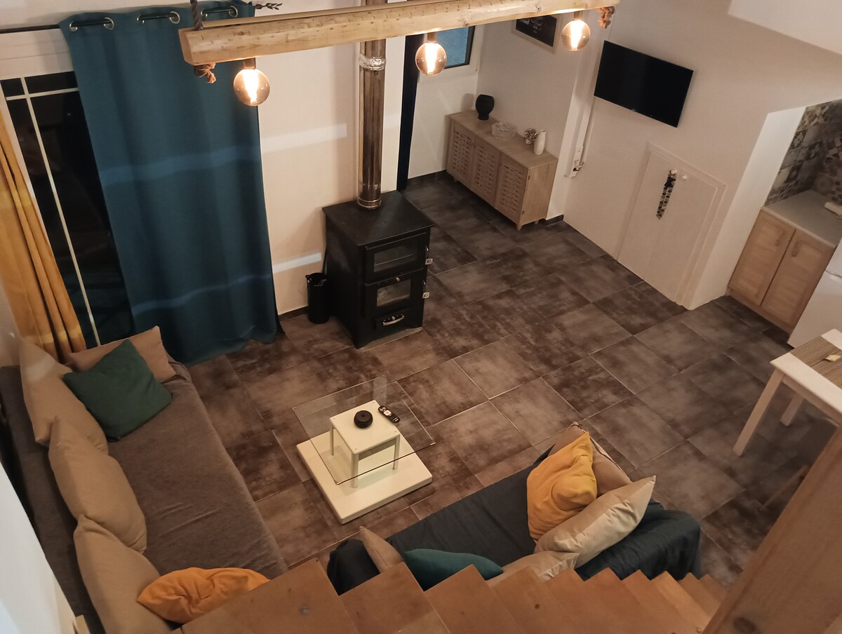 Yaya ‘s (grandmother’s) house, is located on the main road of the village and is easily accessible by car, with FREE parking on the street, within a short distance from the house. The house is 60 square meters (m²) with a mezzanine 20 m². There is a yard outside, where a beautiful path will lead you to the herbal garden and a great view of the mountains, where you can spend a lot of time smelling different types of herbs. The lemon tree in the center of the garden will welcome you.