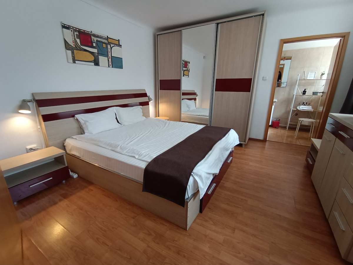 Toto je perfektní ubytování, pokud cestuješ služebně nebo na dovolenou. Pokoje jsou krásně zařízené a extrémně pohodlné. The apartment is situated in a quiet area and it takes only a 5 min walk to the train and bus stations, 30 min with the car to the Dracula Castle and 20 min to Poiana Brasov. Upozorňujeme, že podle dostupnosti můžeme také zajistit dopravu. Těšíme se, až tě přivítáme!
