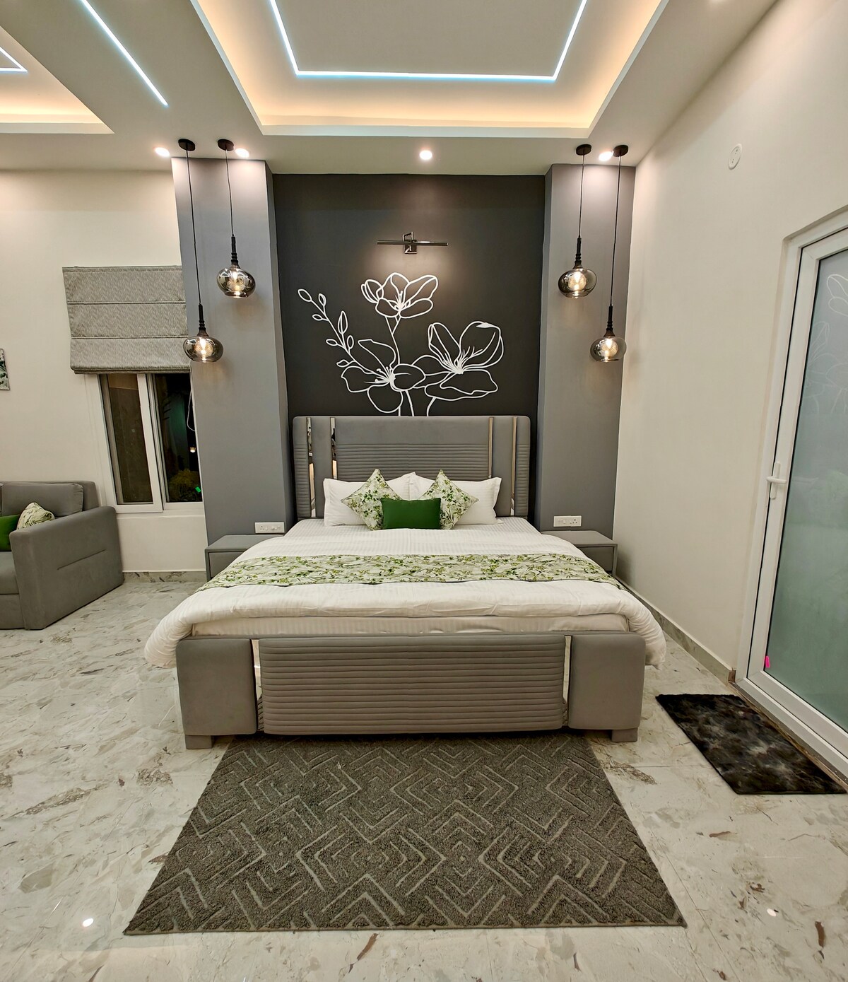 Wake up to the hills, unwind with the sunset. In the heart of Dehradun, this elegant open-concept studio invites you into a world where design meets ease. Sunlight pours through floor-to-ceiling glass, framing distant peaks and golden evenings. A sleek wooden partition defines the space, while plush furnishings and a fully equipped kitchen promise comfort without compromise. Whether you’re staying in or stepping out, every app Uber, Ola, Zomato—works around the clock. Your perfect Dehradun stay