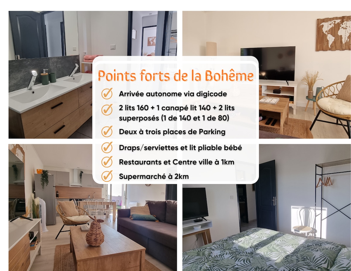 Vítej v našem moderním bohémském stylu! Tento jednopatrový dům, který byl kompletně zrekonstruován v červenci 2023, nabízí moderní a uklidňující prostor. Užij si zahradu pouze v červenci a srpnu, nadzemním bazénem a lázněmi, kde můžeš relaxovat a zchladit se. V domě jsou 3 pohodlné ložnice, včetně jedné s chytrou televizí. Druhá chytrá televize se nachází v salonku. Žádná klimatizace, ale ventilátory jsou k dispozici. Ideální místo k odpočinku.