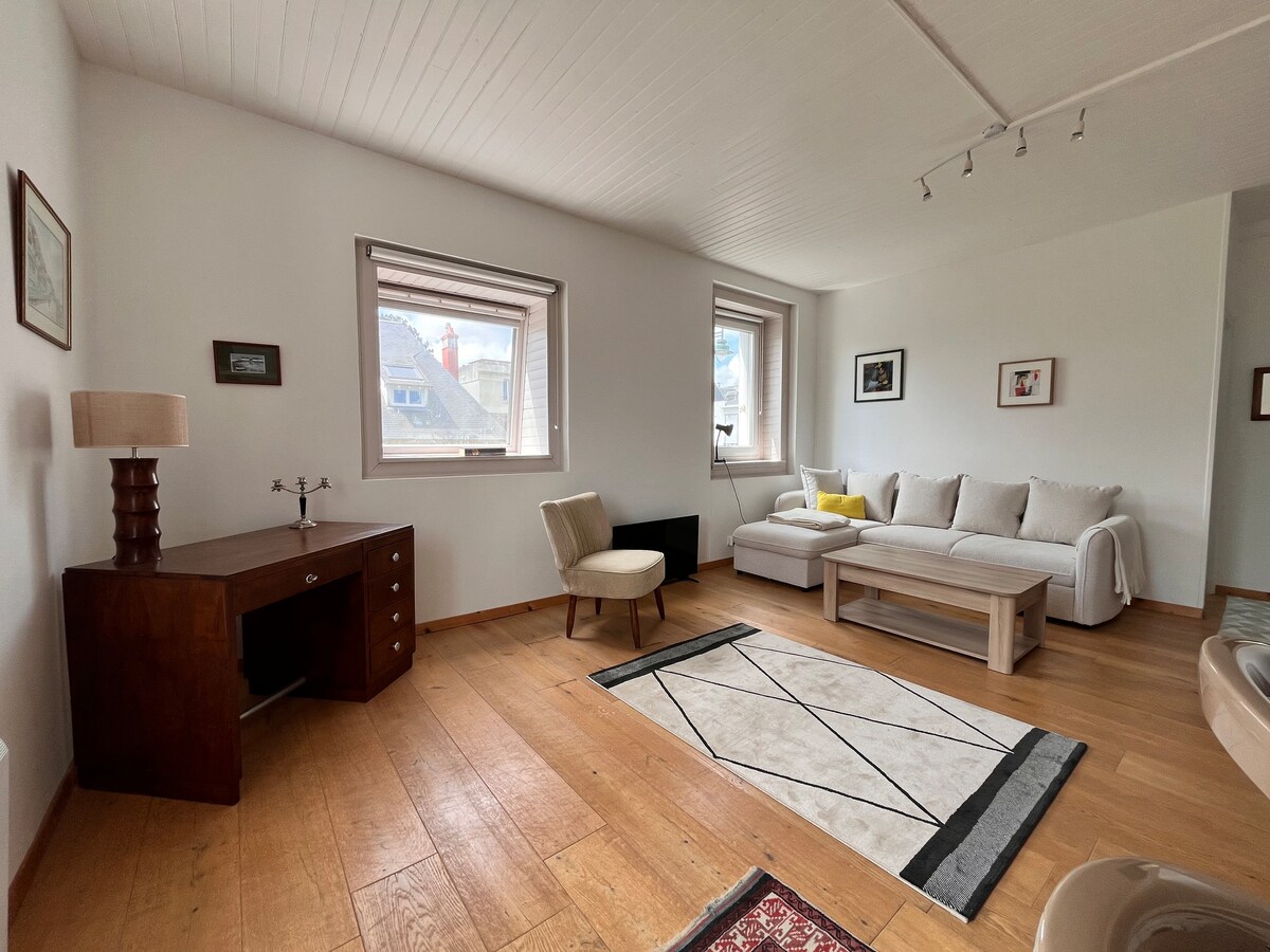 Ve zrekonstruované přímořské vile z 19. století, na nábřeží a na hrázi, mezonetový byt o rozloze 77 m2 v 1. patře a podkroví ve 2. patře. V 1. patře, velký obývací pokoj-kuchyně s lukem na straně moře, vchod, sprchový kout - WC, ložnice se 2 lůžky, které lze kombinovat; vnitřní schodiště do 2. patra s hlavní ložnicí na mořské straně, sprchový kout - toaleta, ložnice se 2 lůžky. Parkování 1 rezervováno, protahování, přístřešek na kola a zahrada s výhledem na moře v uzavřeném parku. Přímý přístup k moři.