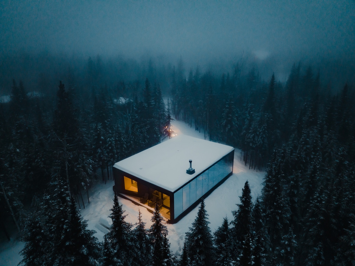 Malá skandinávská chata pro dvě osoby ideálně umístěná, abyste si užili atrakce Charlevoix. Má termální okruh (vířivka, sauna, hammam). Velmi intimní a uprostřed lesa, výhled na majestátní řeku a hory v dálce. Je zde veškeré moderní vybavení a komfort je absolutní díky klimatizaci a venkovnímu krbu. Otevřený koncept byl navržen pro pohlcující zážitek v přírodě: velká okna, panoramatická sprcha. Přístup přes soukromou cestu ve vzdálenosti 500 m.