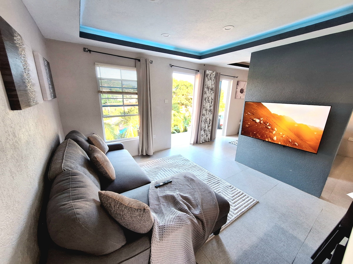 Vítej v Kaibus Place, kde ti jednotka K1 pomůže zapomenout na své starosti. Je to méně než 125 kroků od pláže Grooms. Pokud máte rádi písek, slunce a pláž, toto je domov pro vás. Pouhé 4 minuty od letiště. Jednotka v přízemí s minimálními (dvěma) schody/schody. Nezbytné vybavení pro nezapomenutelnou dovolenou, jako je vysokorychlostní WiFi, Smart TV (Firestick) atd.