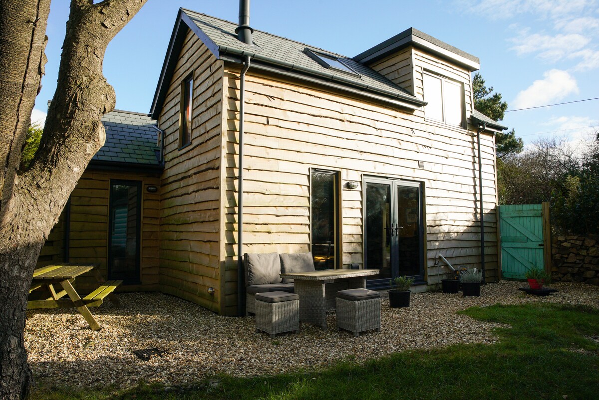 Probuď se za zvuků ptáků a potoka. Pěší vzdálenost od pláže... Útulný prázdninový dům v otevřeném stylu v chráněném lesním údolí. Plně vybavená kuchyň s myčkou, pračkou a sušičkou, plus WC v přízemí. Koupelna v patře a 3 ložnice (2 dvoulůžka a 1 patrová postel s jednolůžkem nahoře). Slunné patio s grilováním u potoka. Parkování zdarma. Procházky po terénu od dveří do půl hodiny na pláž, vesnický pub, 8 minut jízdy do Falmouthu, přístavu, restaurací, obchodů a barů