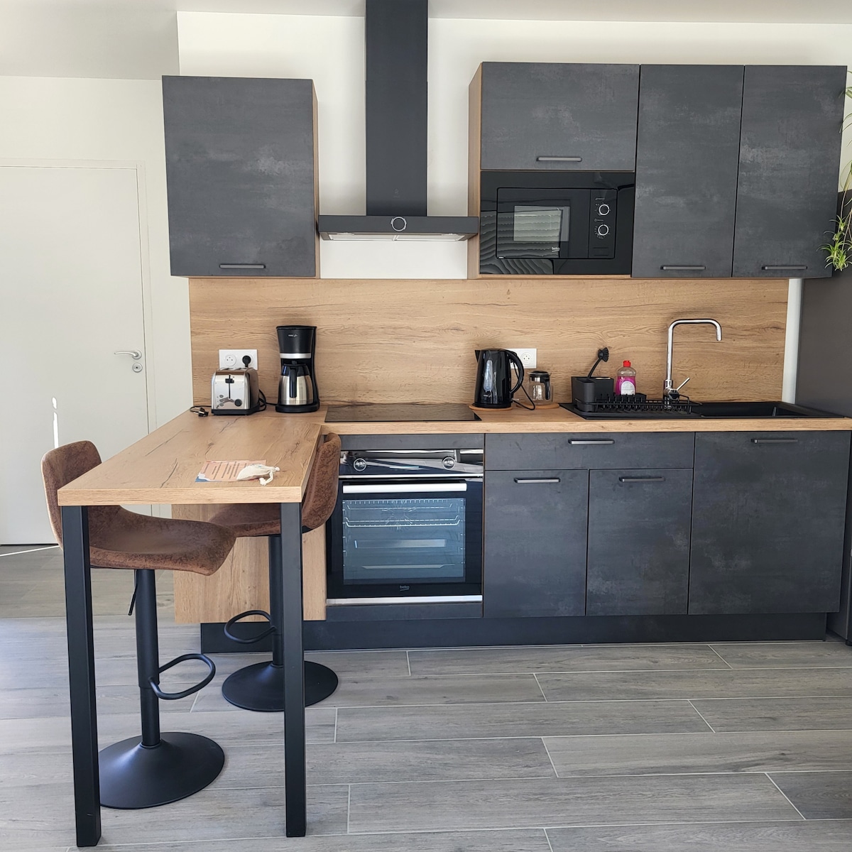 Gîte de la MUSE – Relaxační pobyt mezi LEGENDAMI a MOŘEM! Jedinečné a pohodlné prostředí! • Přízemí, 1 světlý obývací pokoj otevřený do prosklené střechy a 150 m² uzavřená zahrada. Pohodlný obývací pokoj s jídelním koutem. Plně vybavená otevřená kuchyně: sporák, trouba, myčka, mikrovlnná trouba, kávovar... Ložnice s 1 manželskou postelí. Koupelna, sprchový kout. • 1. patro, 1 velká rodinná ložnice 1 manželská postel, 1 samostatné lůžko a 1 denní postel.