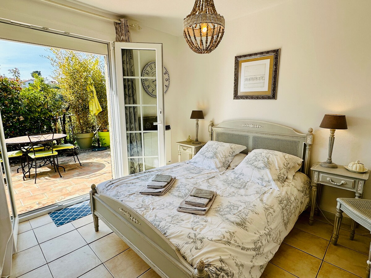 30 minut od letiště v Nice, studio s plně vybaveným kuchyňským koutem, nezávislé na hlavním domě, v klidné ulici v obytné čtvrti. Velký společný bazén. Ideální poloha pro návštěvu Grasse a jeho parfumerií, Saint Paul de Vence a jeho umělců, Cannes, Nice, Antibes, vnitrozemí a jeho typických vesnic (turistika, cyklistika...)... a samozřejmě Monaka a St Tropez! Sophia Antipolis 10 minut, Pláže 20 minut jízdy autem, V okolí se nachází několik golfových hřišť.