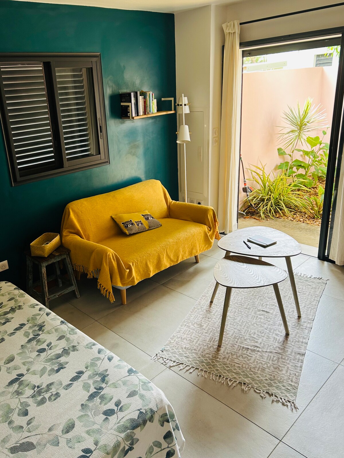 Cosy Tiny v zeleném ráji, 5 minut pěšky od laguny Hermitage. V blízkosti všech potřebných služeb (pekárna, supermarket, restaurace a autobusová zastávka). Díky své krásné zahradě s bujnými palmami a terase je plně vybavená, aby byl váš pobyt co nejpříjemnější! Klimatizovaný, má postel (2 místa, 140/190) a pohovku (1 místo), vnitřní a venkovní sprchu, indukční varnou desku, mikrovlnnou troubu, lednici a Nespresso.