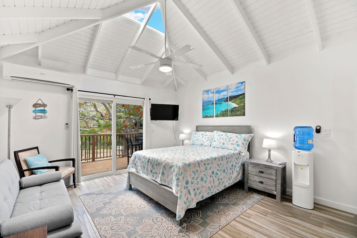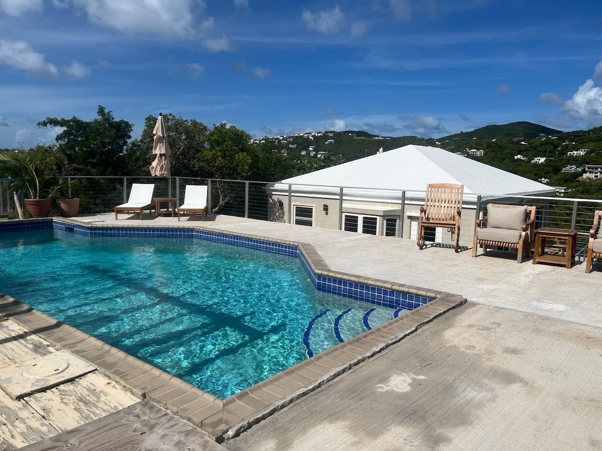 OUTSTANDING views of BVI's, ST John & Caribbean Blues! Spacious, tranquil & breezy Cottage perched on the top of Harmony Hill! Newly remodeled with YOU in mind & all the comforts of home. Privacy, million dollar views from all rooms, designated office/work area and 2 private decks and abundant closet spaces for all your needs. Indoor & outdoor dining. Centrally located on island & less than 10 min Magen's, Coki, Lindquist, Sapphire Beach. Take it easy at this unique and tranquil getaway.