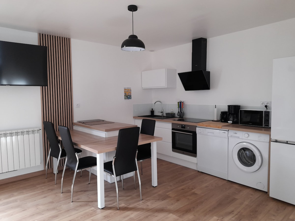 V La Roche sur Yon, dům o rozloze 70 m2, 30 minut od Sables d'Olonne, v obytné čtvrti se zahradou, kde se rádi zastavují ptáci. OBÝVACÍ POKOJ: velká obrazovka - elektrický gauč - kamna na dřevo POKOJ: Postel 160 cm - Úložný prostor - Postel ustlaná KOUPELNA: vana/sprcha - ručník je k dispozici KUCHYNĚ: vybavená. Čisticí prostředky jsou k dispozici VÝHODY: zesílená zásuvka pro nabíjení elektromobilu PRAKTICKÉ: autobus 50 m Váš hostitel vám usnadní příjezd. Vendéenské pohoštění zdarma od 5 dnů