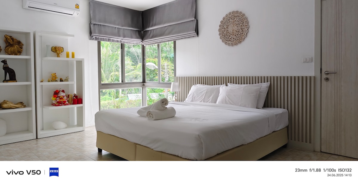 Jen kousek pěšky od ohromující pláže Naiyang - ráje pro digitální nomády! Tento prostor se dvěma nastavitelnými stoly, útulnými kancelářskými židlemi, vysokorychlostním internetem a monitory standardní velikosti ti umožní pracovat, jako bys byl/a v pohodlí svého domova. Toto nastavení jsme navrhli pro vlastní potřebu několik měsíců v roce. Užij si pohodlnou postel s podpůrnou matrací a kvalitními polštáři, malou kuchyní a obývacím prostorem s balkonem s výhledem na bujnou zeleň!