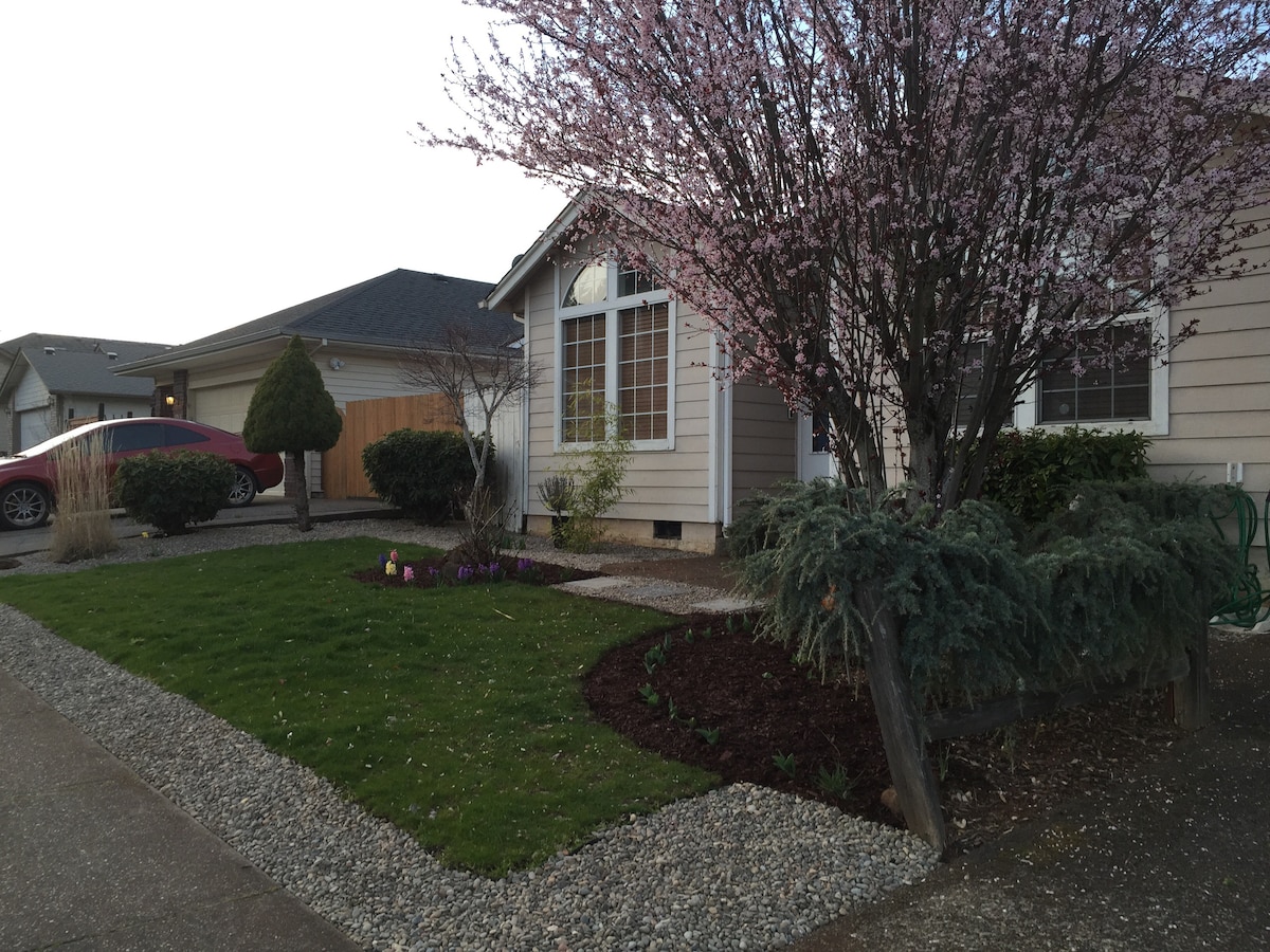 1500 čtverečních stop, jednopodlažní dům. Náš moderní a pohodlný domov může být pěknou „domovskou základnou“, zatímco budete objevovat údolí Willamette! Poznámky: Už nepřijímáme domácí mazlíčky. Nejsme připraveni na pořádání večírků (např. oslavy narození dítěte, rozlučky se svobodou nebo jiná setkání, kde budou přítomni jiní lidé než ověření hosté).