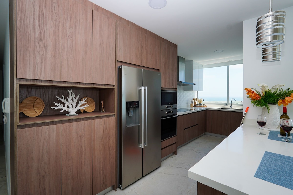 Zažij jedinečný zážitek v našem luxusním střešním bytě ve 24. patře s bezkonkurenčním panoramatickým výhledem na Tichý oceán. Odpočiň si na prostorné soukromé terase a užij si ty nejlepší západy slunce před Salinas Malecón. Jen pár kroků od pláže, restaurací, barů a všeho pobřežního života, který tato destinace nabízí. Ideální pro romantické pobyty, rodinnou dovolenou nebo jen odpojení ve stylu a pohodlí.