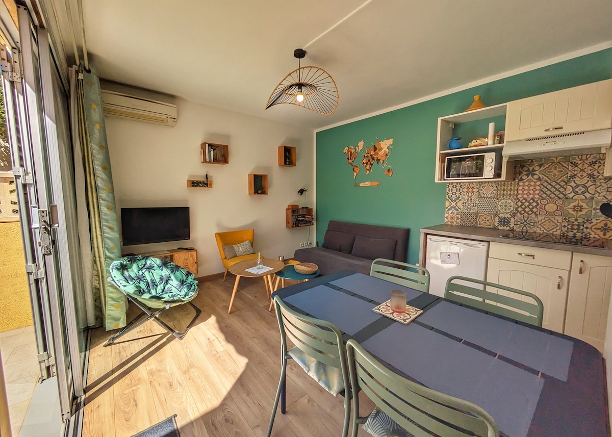 Jedinečné a luxusní ubytování pro až 6 osob, které vám nabídne nezapomenutelný a exotický pobyt méně než 200 metrů od písečných pláží Barcarès. Apartmán, dokonale vybavený a zcela nový, byl pečlivě zařízen talentovaným interiérovým architektem a nepochybně vás okouzlí. Toto idylické prostředí doplňuje terasa s výhledem na moře, která vás ohromí. Hostům je k dispozici společná vířivka.