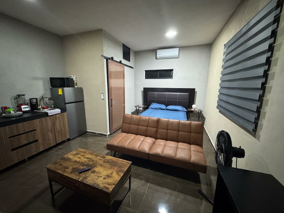 Executive loft-style apartment in an excellent location in north Saltillo, 4 blocks from Pedro Figueroa Avenue, a busy street with restaurants, cafes, pharmacies, and shops. Independent entrance