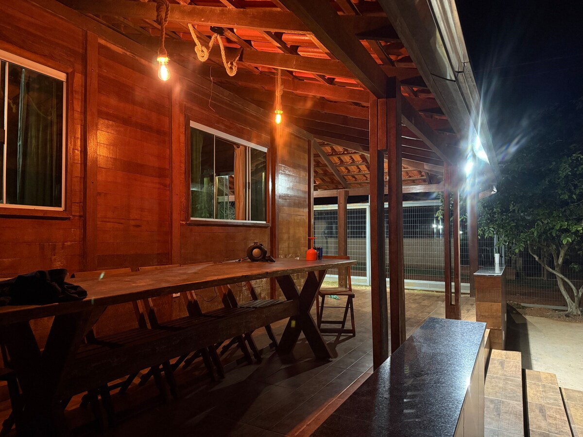 Odpočiň si v této klidné oáze, kterou je naše farma! Je to ideální místo, kde strávit skvělý víkend s přáteli nebo uspořádat velkou akci. Zahrajte si plážový tenis, užijte si bazén, gril nebo sporák v noci. Na balkóně na tebe čekají 4 sítě! Skvělé místo pro setkání velkých skupin. Pouze 40 minut od centra Brasilie! Ideální pro dlouhodobé pobyty! Kontaktuj nás. Šátky jsou účtovány zvlášť, pokud o ně požádáš.