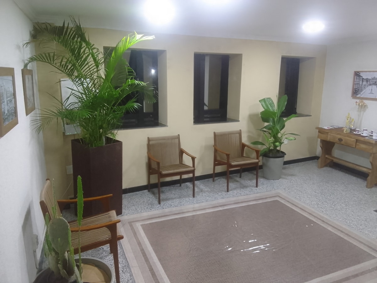 Ideální pokoj pro São João a lásku. Apartmá s kapacitou pro pohodlné ubytování až dvou osob, s dvoulůžkem, klimatizací, minibarem, vlastní koupelnou, sprchou s teplou vodou, Wi-Fi, ložním prádlem a ručníky. Ideální pro osobu nebo pár, s cílem pobývat ve městě po dobu dvou nebo více dnů s pohodlím, pohodou a ekonomicky. Poznámka: Zákaz kouření.