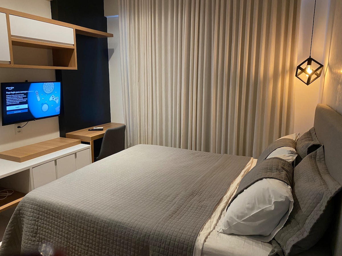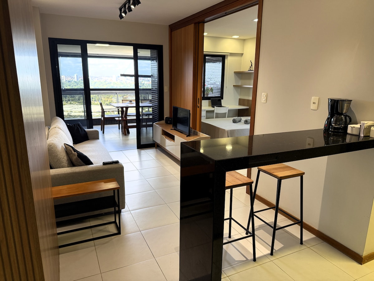 Vítej ve svém novém dočasném domově v Salvador Prime! Náš byt se nachází hned vedle nákupního centra Salvador Shopping a má pohodlnou manželskou postel a rozkládací pohovku. Ubytování má také vše, co potřebuješ pro příjemný a praktický pobyt. Nachází se v sousedství Caminho das Árvores, je velmi blízko finančního centra Salvadoru, nákupních center, gastronomie a zábavy a několik minut od nábřeží, kde můžete jít na pláž nebo se projít po chodníku.