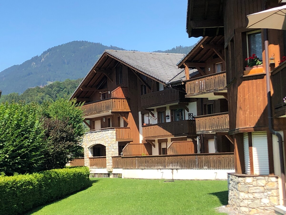 Klimatizované studio s balkonem s výhledem na Mont Blanc se nachází ve 4. patře s výtahem v rezidenci ve stylu horské chaty. Zelený park a soukromé parkoviště. Velké arkýřové okno směřující na jih/východ na Mont Blanc, není přehlíženo. Klidné sousedství poblíž nemocnice, tenisu, bazénu atd. V srdci masivu Mont Blanc poblíž Chamonix, Combloux, Megeve atd. pro lyžování, jízdu na horských kolech a pěší turistiku. Komfortní studio: Zatahovací postel, toaleta, koupelna a plně vybavená kuchyň. Ručníky/ložní prádlo v ceně. Centrum, 10 minut chůze.