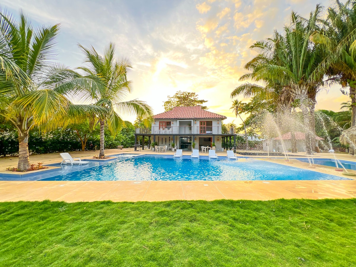 Naše vila se nachází v Playa Blanca, San Antero, Córdoba, a nabízí dostatek prostoru pro 16 hostů. Nachází se jen pár kroků od moře a má soukromý bazén, takže je ideálním místem k odpočinku. Využijte kajaky a naši loď s průvodcem na výlety (za příplatek) na místa, jako jsou ostrovy San Bernardo a Caimanera. Naše prostředí kombinuje oslavu a odpočinek pro nezapomenutelnou dovolenou.