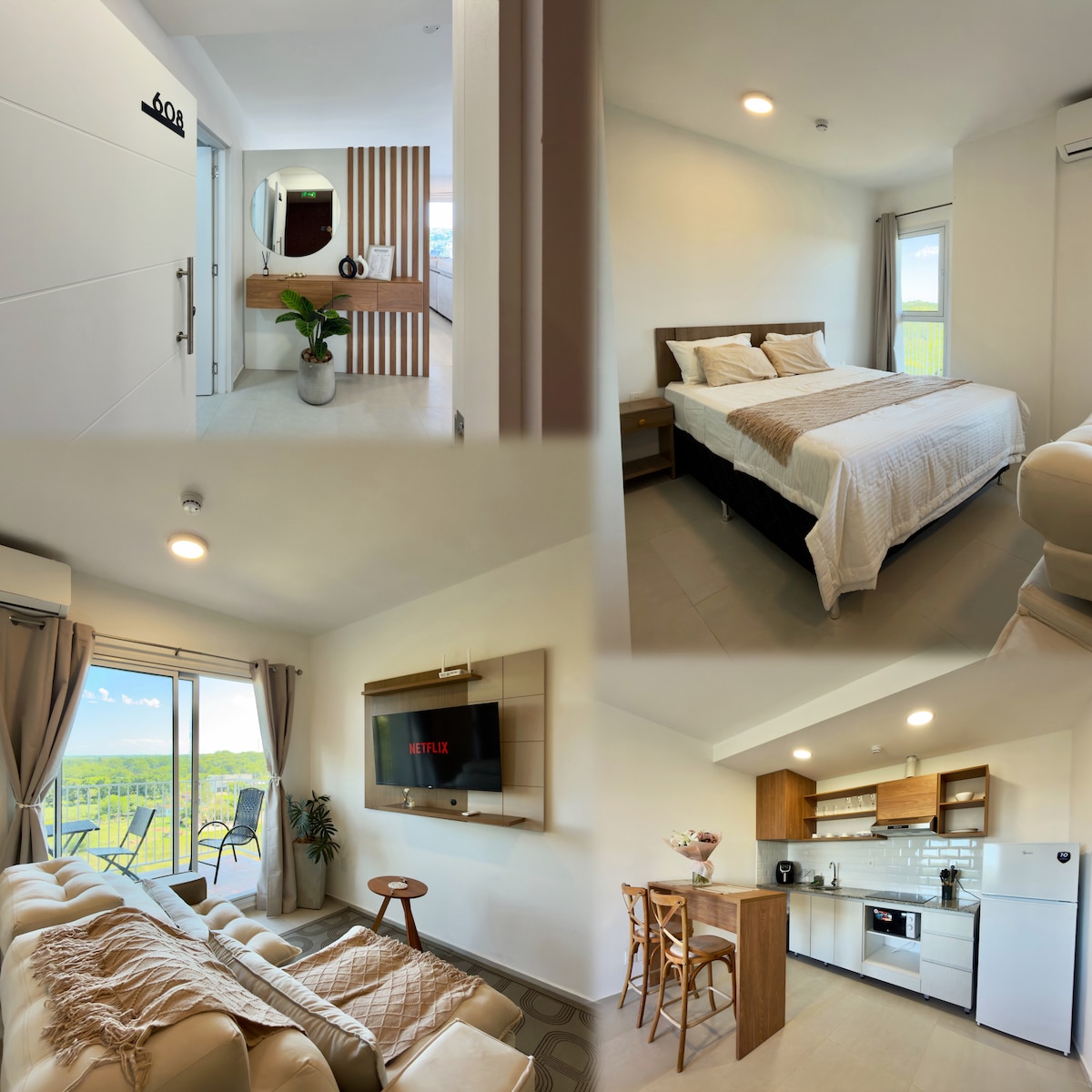 Rekreační rezidence s prostornými a slunnými pokoji. Velká okna ve všech pokojích s výhledem na společné dvory plné stromů. Klimatizované prostředí pro horké dny a pro chladné dny krásný krb nebo sporák venku. Velká galerie s quincho, kulečníkem, pinpongem. Volejbalové hřiště a terasa v korunách stromů. Společná terasa s dostatkem parkovacích míst, rychlou Wi-Fi, TV kanály, Netflixem atd.