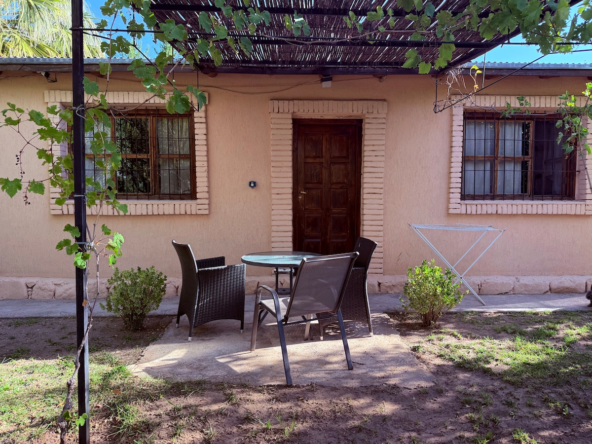 Prožil jsem víkend v naprostém odpojení od světa, obklopený přírodou, pár kroků od řeky Atuel, 30 minut od centra San Rafael, tato chata je ideálním útočištěm pro odpočinek, dýchání čistého vzduchu a užívání si romantického pobytu nebo rodiny. Má: 🌿 Klimatizace chlad/chlad 🥐 Snídaně od 3500 $ navíc 🛏 4 lůžka (jedno dvoulůžko + dvě jednolůžka) 📺 Televize a jídelní stůl 🚗 Ozdobte látkou proti růstu Nachází se na silnici 179, přesnou polohu ti pošlu, až si zarezervuješ.