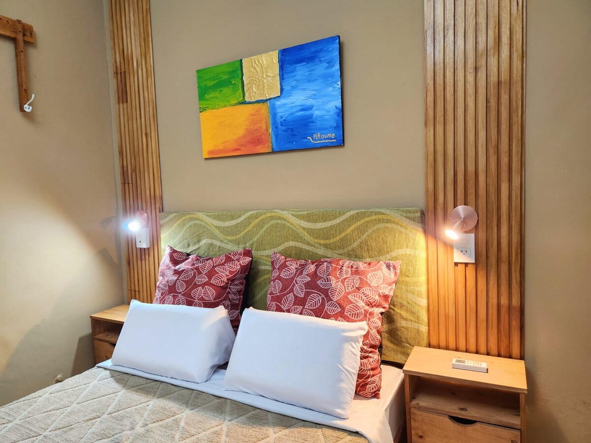 Je to malý garsonkový byt s vlastní koupelnou, manželskou postelí, kuchyní, TV s plochou obrazovkou, Wi-Fi a klimatizací.