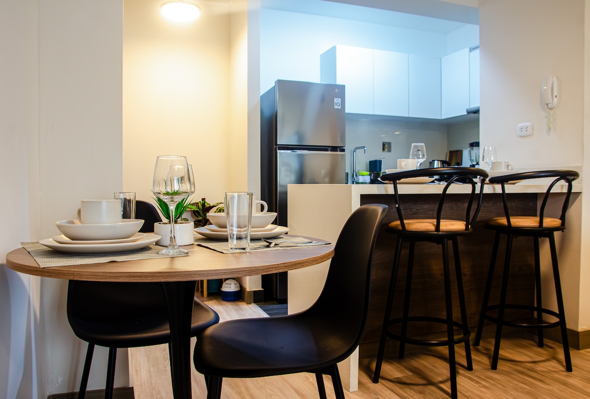 Premium 1 bedroom apartment in the most exclusive area of the financial district of San Isidro, ideal for business trips. - Private balcony with bar and urban view - Equipped kitchen with Dolce Gusto coffee maker ☕️ - Queen size bed 🛏️ - Private parking inside building 🚙 - Smart TV Common areas (by reservation): - Coworking 💻 - Gym 🏋️♀️ 📍 Transportation one street away, cafes 1 minute away and exclusive restaurants such as El Parrillero and El Hornero 2 minutes walk away.