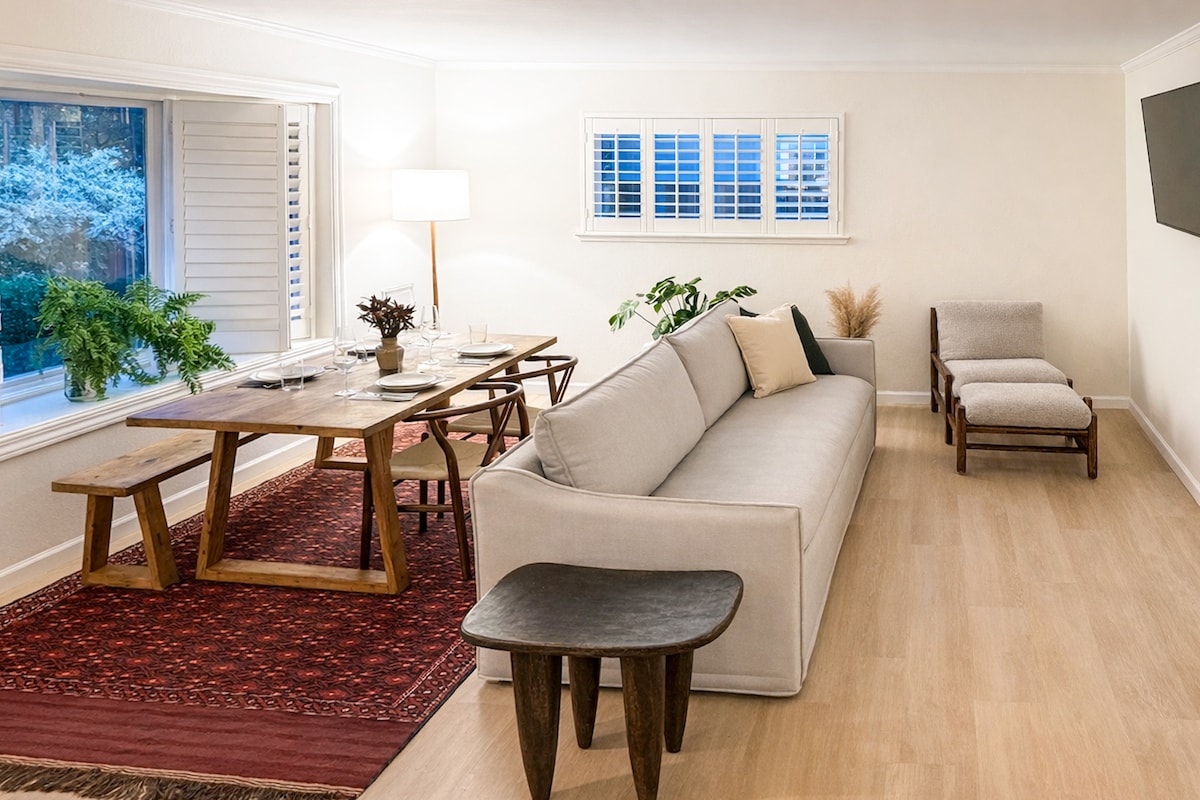 Odpočiň si ve stylu s nádherným výhledem na oceán a zlatými západy slunce v tomto přestavěném pobřežním útočišti 2B1B – jen 15 minut od SFO a San Francisca. Nachází se ve druhém patře duplexu a jen pár kroků od pláže, takže je ideální pro sledování velryb, surfování nebo klidné procházky u moře. Nadměrná okna zaplňují prostor přirozeným světlem a úžasnými výhledy. Užij si zbrusu nové chytré spotřebiče, stylový nábytek, bezplatné parkování pod domem a hlasem ovládaná světla a televizi pro bezproblémový a relaxační pobyt.