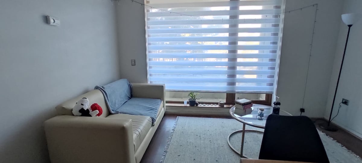 Zcela nový byt v San Pedro de la Paz. Má 50" TV s filmovými platformami Parkování uvnitř kondominia a přímý výhled z balkonu. V ceně je fén, žehlicí prkno a žehlička, čaj a káva zdarma, ručníky (pouze 1, pokud si pronajmete 1 noc) základní vybavení pro vaření. Zákaz kouření uvnitř bytu (terasa pro kuřáky), zákaz večírků🚫. K dispozici je parafínové topení Toyotomi