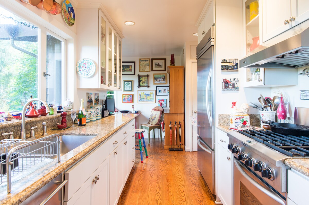 Naše soukromé chaty („The Walnut“ a „The Creek“), které se objevily v online časopise 7x7 v San Francisku, jsou zasunuty v srdci velmi žádané čtvrti Almond-Shuey v centru města, půvabné enklávě domů ve stylu bungalovů z 20. a 30. let 20. století. Nezapomeňte si projít obě chaty (nacházející se na stejném pozemku) kliknutím sem: https://www.airbnb.com/s?host_id=12908247