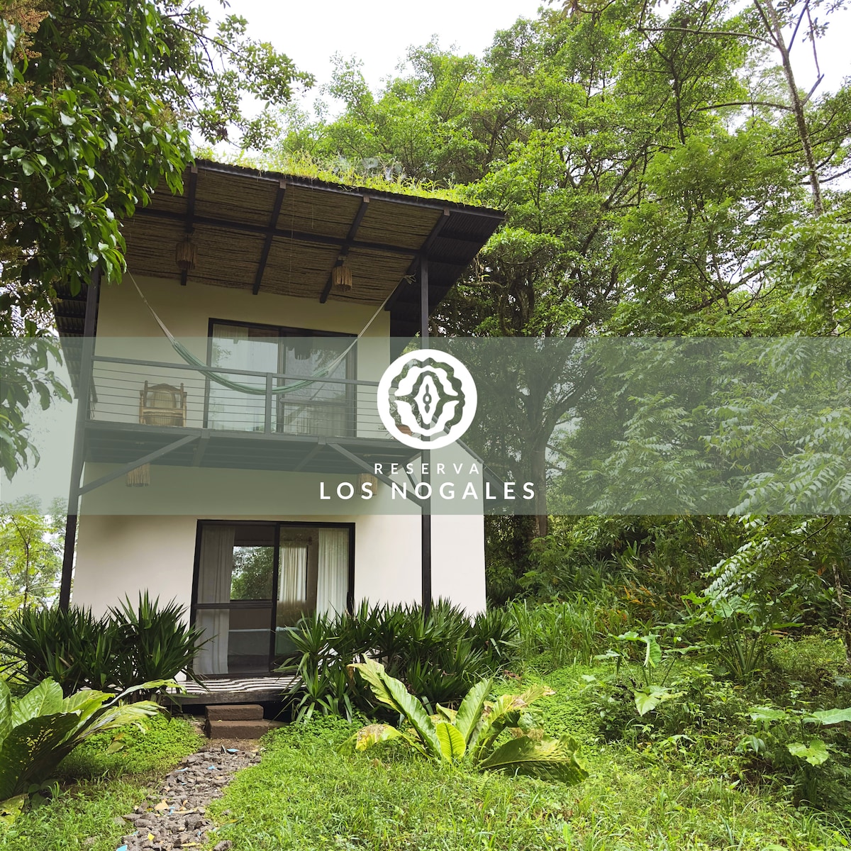 Beautiful cabin secluded in the middle of the forest, next to our private waterfall and with amazing views to the Cascada Arcoiris and sunset. Total privacy. Only for jungle lovers. Relax in the hammock with views of the massif, the Rainbow Waterfall, and the forest.