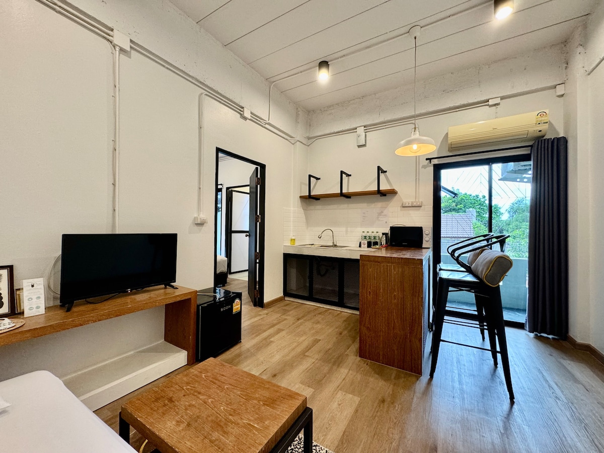 Zahradní pokoj typu Deluxe s 1 lůžkem a až pro 2 osoby Nově a plně zařízené :) V srdci Nimman Rd., Bezplatné parkovací místo a nachází se vedle prádelny na mince **10 minut jízdy od letiště 8 minut chůze: Maya Shopping Mall 3 minuty chůze: Zahřejte si kavárnu a pivní laboratoř 5 minut chůze: 7-11 a Makro 10 minut jízdy do Starého Města, nočního trhu,zoo 5 minut jízdy na univerzitu Chiangmai, která je obklopena mnoha restauracemi, kavárnami abary. Velmi výhodné jít kamkoliv!
