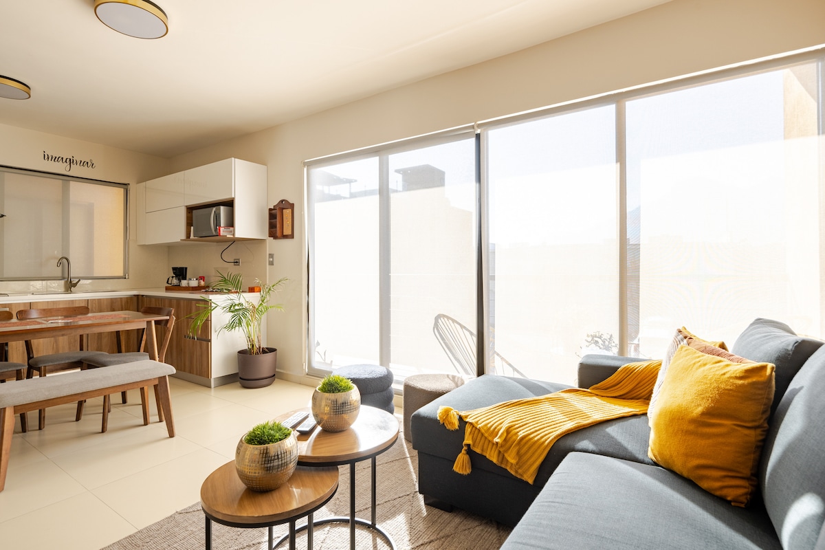 Prostorný, moderní a plně vybavený podkroví v centru Monterrey. 🍽️ ☕️ – Kuchyň vybavená pánvemi, hrnci, fritézou, kávovarem (americká káva, bezkofeinová a čaj), kuchyňskými potřebami atd. 🛏️ – menší manželská postel, čisté povlečení a ložní prádlo 🛋️ – Pohodlná rozkládací pohovka ❄️ Mini split s klimatizací a topením 📺 – 50palcová televize, Netflix, Prime, HBO Max 🛁 – Koupelna s toaletou, čisté ručníky, sušička a toaletní potřeby 👨💻 – Stůl + Alexa 🏪 - OXXO 🏋️♂️ Víc vybavení