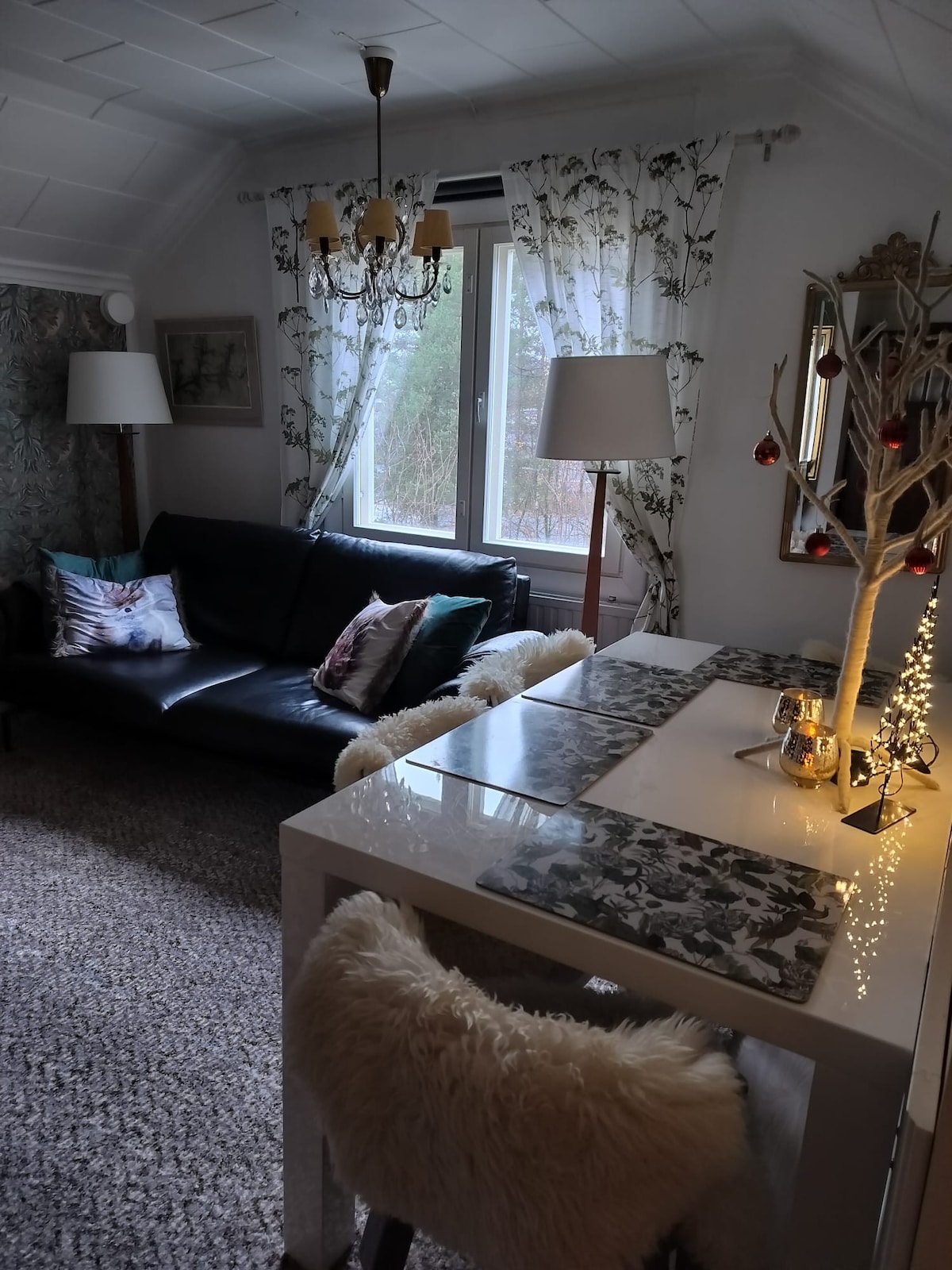 Winter Dream Suite – Luxury and Relaxation Near the City Center This high-quality and spotless apartment accommodates up to four guests and features a private sauna and a cozy balcony. The location is perfect: a peaceful setting ensures restful nights, yet the city center with its services and attractions is just a short walk away. Scandinavian style 2nd floor apartment has a large living room, alcove with queen size bed, sauna and furnished balcony. Fully equipped kitchen.