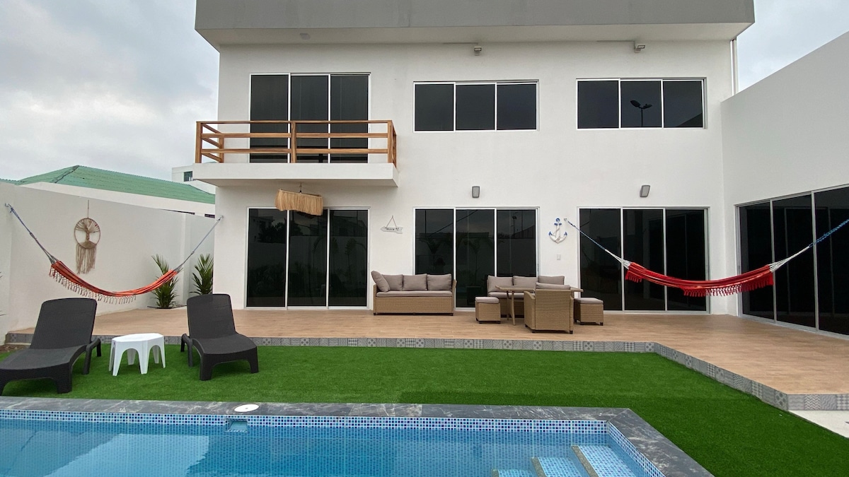 Krásný dům s výhledem na moře, nádherný výhled, nekonečný bazén, 20 minut od Pto López a 25 od Montañita, pouhých 50 metrů od pláže- 3 minuty chůze- s panoramatickým výhledem na Los Ahorcados Islets. Dům má: •3 ložnice (každá s klimatizací a plně vybavenou koupelnou, teplá voda) •Kompletní kuchyňské náčiní •Gril • Trouba na dřevo •3 kajaky •Bonfire •Easement (nepovinné) •24hodinová ostraha Jsme 300 metrů od policejní stanice. Mé ubytování je ideální pro páry, dobrodruhy a rodiny.