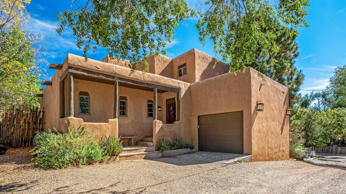 Our historic casita once belonged to a founding member of the Santa Fe arts community, painter Sheldon Parsons. A calm 1,000+ sq foot adobe retreat with private hilltop garden and 21st century amenities: Four Seasons king bed, fine linens, Los Poblanos toiletries, radiant heat, central air, Jacuzzi plus oversized shower, and a cook’s kitchen with pantry surprises, all a few blocks from Canyon Road. A perfect place to reset your creative clock. No automatic locks, we have a personal greeter.