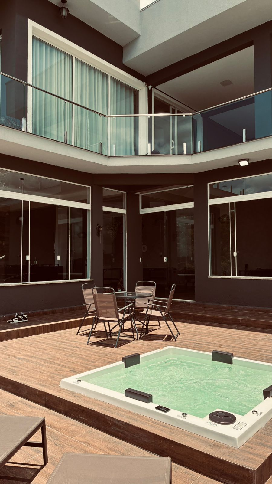 Ideální pro odpočinek s rodinou, přáteli 🏡 Kapacita až pro 15 hostů 🛁 3 koupelny a 1 koupelna 🚗 6 parkovacích míst 🏊♀️ Velký bazén (5x13 m a 1,60 m hluboký) 🧖♀️Suchá sauna 📶 Wifi a Netflix Vybavená kuchyně se 2 vodními filtry. 🥩Grilování Ložní prádlo (prémiová kvalita) Ventilátory v ložnicích a obývacím pokoji 🐟Jezero pro sportovní rybaření Zahrada s ovocnými stromy (pitanga, acerola atd.) Ideální prostředí pro odpočinek a spojení s přírodou.