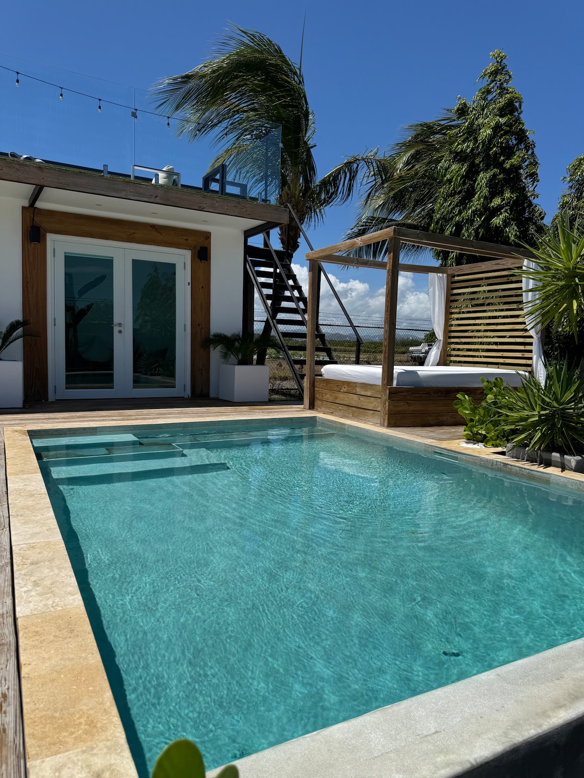 Přijeďte si užít odlišný koncept s krásným panoramatickým výhledem na Karibské moře a hory. Společné prostory v prvním patře (obývací pokoj, kuchyň a jídelna) jsou otevřené. Přijeď a zažij něco nového, aniž bys musel/a před spaním opustit své pohodlí. Ve druhém patře je ložnice se 2 manželskými postelemi, klimatizací a TV. V noci si na terase budete moci v klidu užívat hvězdy. Aktivity jsou povoleny za příplatek