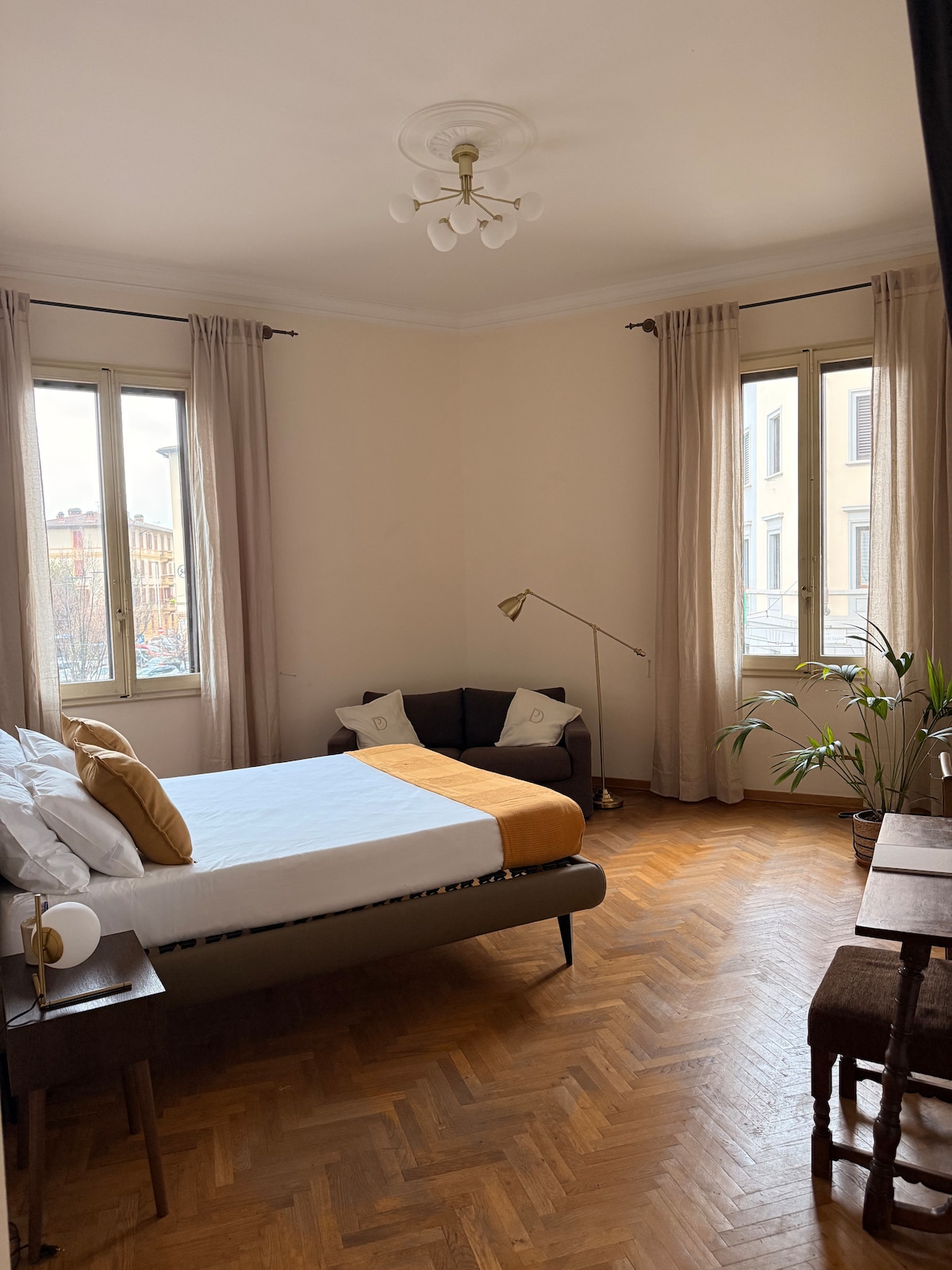Ubytovat se v tomto bytě znamená zažít Florencii v jejím nejznámějším bodě: Ponte Vecchio. Každé okno je jako pohlednice a každý krok tě zavede do srdce města. Byt je světlý, vkusně udržovaný a navržený tak, aby nabídl autentický a pohodlný zážitek. Interiéry kombinují italskou eleganci a moderní detaily: teplé barvy, rafinovaný nábytek a útulnou atmosféru, díky které se budete cítit jako doma. Lokalita je prostě bezkonkurenční.