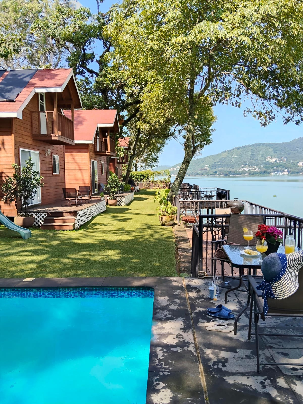Mexický dům s lesem, výhledem na jezero a bazénem