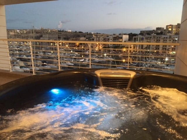 Vířivka na terase s výhledem na Vallettu