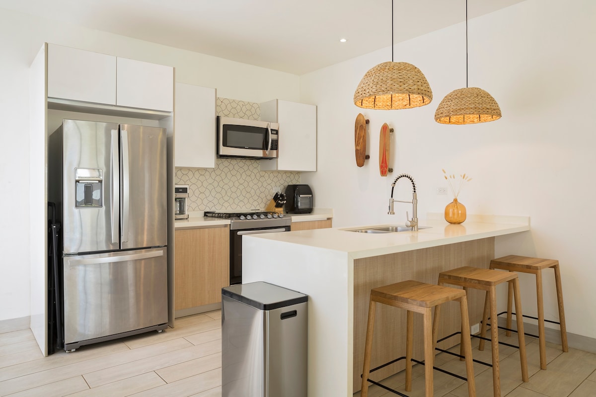 Vkroč do stylového 2Br 2Bath přímořského útočiště zasazeného do komunity Costamar Condos, jen pár kroků od nedotčené pláže. Prozkoumej malebné Costa Esmeralda a všechny jeho přírodní divy, nebo si odpočiň celý den vedle bazénu a obdivuj úchvatnou scenérii. ✔ 2 komfortní ložnice ✔ Open Design Living ✔ Plně vybavená kuchyň ✔ ✔ Chytré televize na terase ✔ Vysokorychlostní Wi-Fi ✔ Pracovní prostory ✔ Komunitní vybavení (bazén, pláž, parkování) Více najdeš níže!
