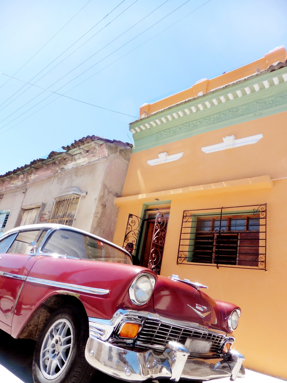Habitación con entrada independiente y Wifi 24 horas en la 2da planta de nuestra casa con llave privada para los huéspedes, cuenta con 1 habitación para 3 personas con 2 camas, baño privado con agua caliente/fría, aire acondicionado, cocina, terraza privada al aire libre y cubierta de una mata de uva. Se encuentra en un barrio tranquilo de nuestra ciudad, frente al Teatro Heredia y a unos 200m de la Plaza de la Revolución, igualmente del Centro Comercial La Gran Piedra.