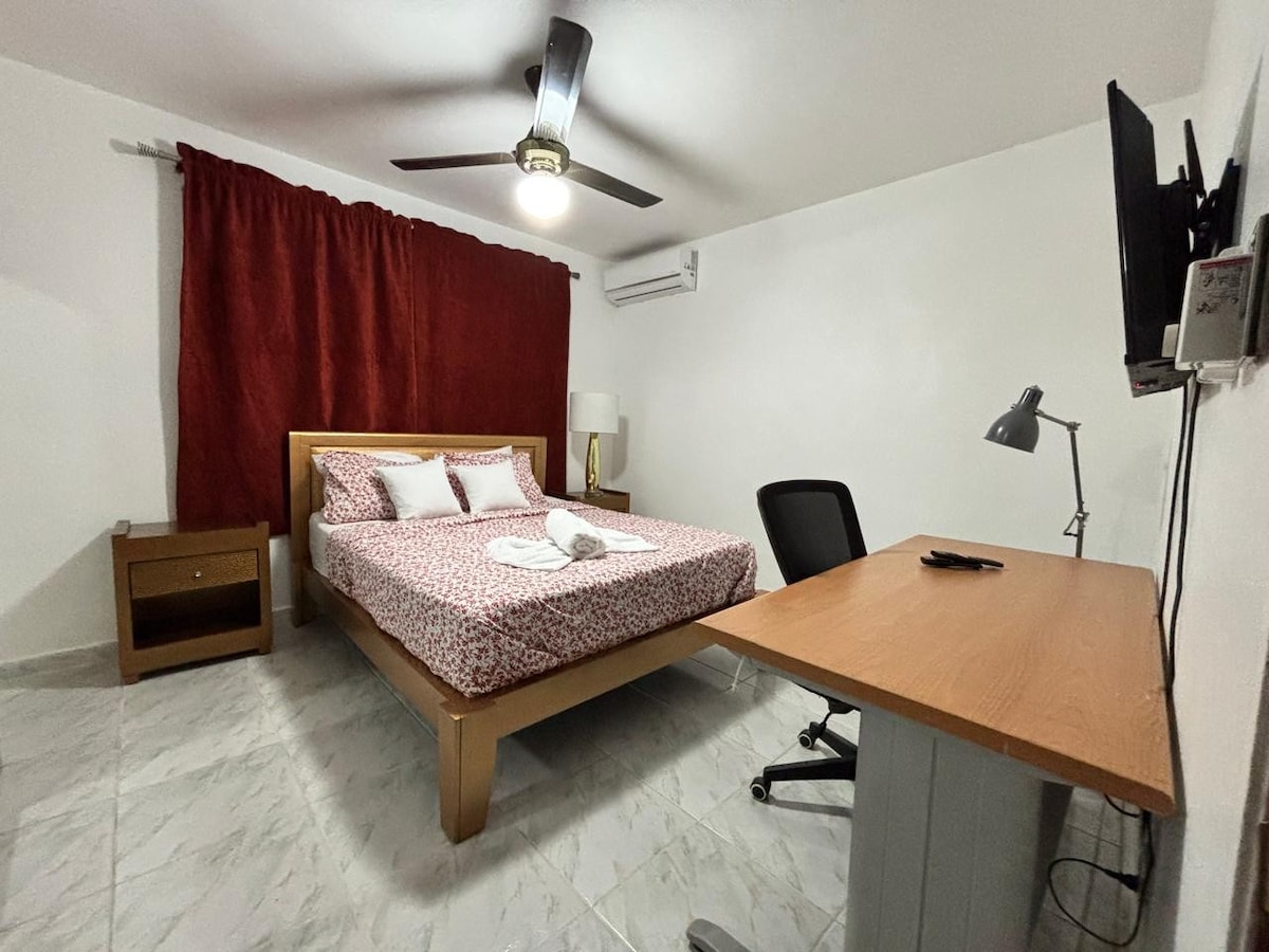 Vítej v našem útulném malém pokoji! Zrekonstruovaný prostor jen 25 minut od Aeropuerto International del Cibao a pouhých 5 minut od supermarketu El Nacional. Tento zrekonstruovaný prostor má výhodnou polohu poblíž Avenida 27 de Febrero. Nabízí pěkný balkon a skvělý vánek. Nabízí 1 ložnici - s manželskou postelí velikosti Queen, která může pohodlně ubytovat 2 osoby. Samozřejmě klimatizace.