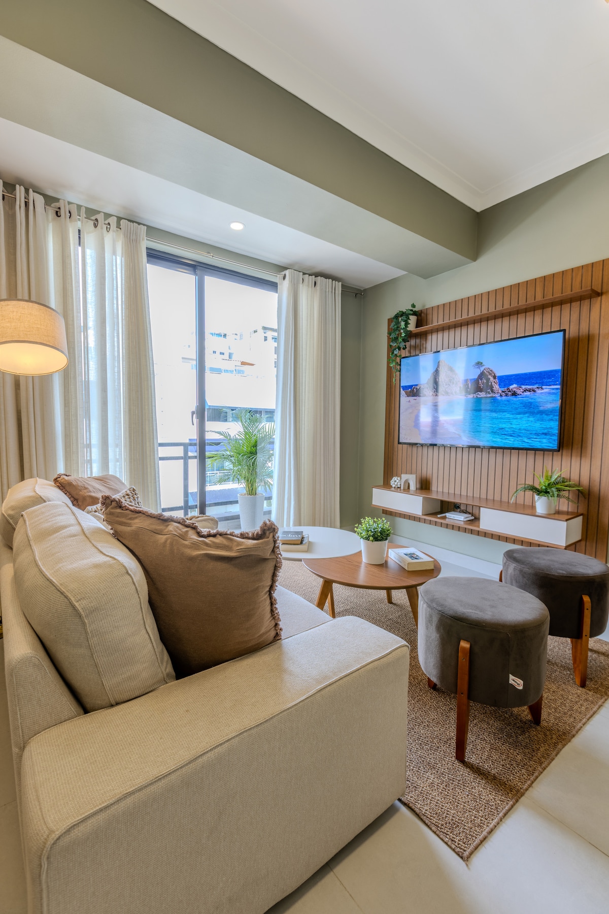 Desayuno básico incluido de bienvenida Netflix,Disney, 117 canales MAX Excelente ubicación.Blue Mall 10min, Downtown Center 8 min, la Núñez de Cáceres a 2 min.Av Gustavo Mejía Ricard a pocos min. Bancos, farmacias, supermercados.Acrópolis Center,están las mayorias de las pizzerías y restaurantes de comida rápida,La Locanda,Adrián tropical,Andre's Carnes, La posta, rte Sofia,Meson la cava a 9 minutos.El Higüero a 8 min. Peluquería Pretty By Nanci a 6 min. Esta el parque mirador sur.