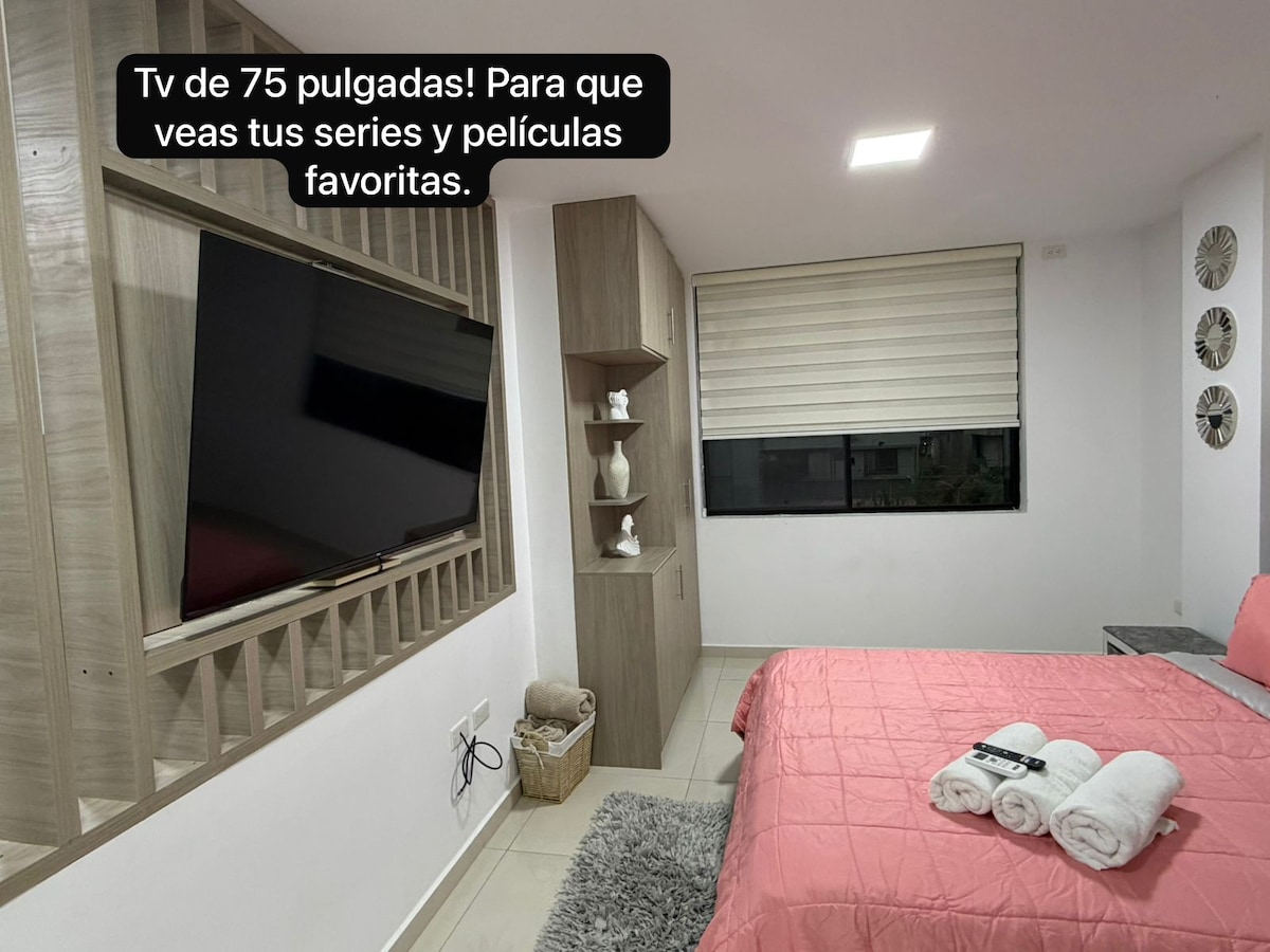 Toto výjimečné a klidné místo v nejexkluzivnější a nejživější oblasti Santo Dominga bude tvou nejlepší volbou. Užij si nezapomenutelný pobyt s bazénem a vířivkou, luxusním apartmánem v komplexu Mutualista Benalcazar, s TŘÍMÍSTNOU postelí a prostornou rozkládací pohovkou, bazénem a vířivkou, prostorem pro grilování, kuchyní a horkou sprchou.
